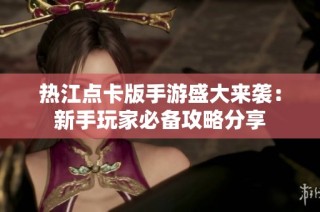 随着《热江点卡版手游》的盛大上线,众多玩家纷纷涌入这个充满激情与挑战的游戏世界。作为一款以热血江湖为背景的角色扮演游戏,它不仅吸引了大量老玩家的回归,同时也吸引了大批新手的加入。对于新手玩家而言,了解游戏的基本玩法及相关攻略...